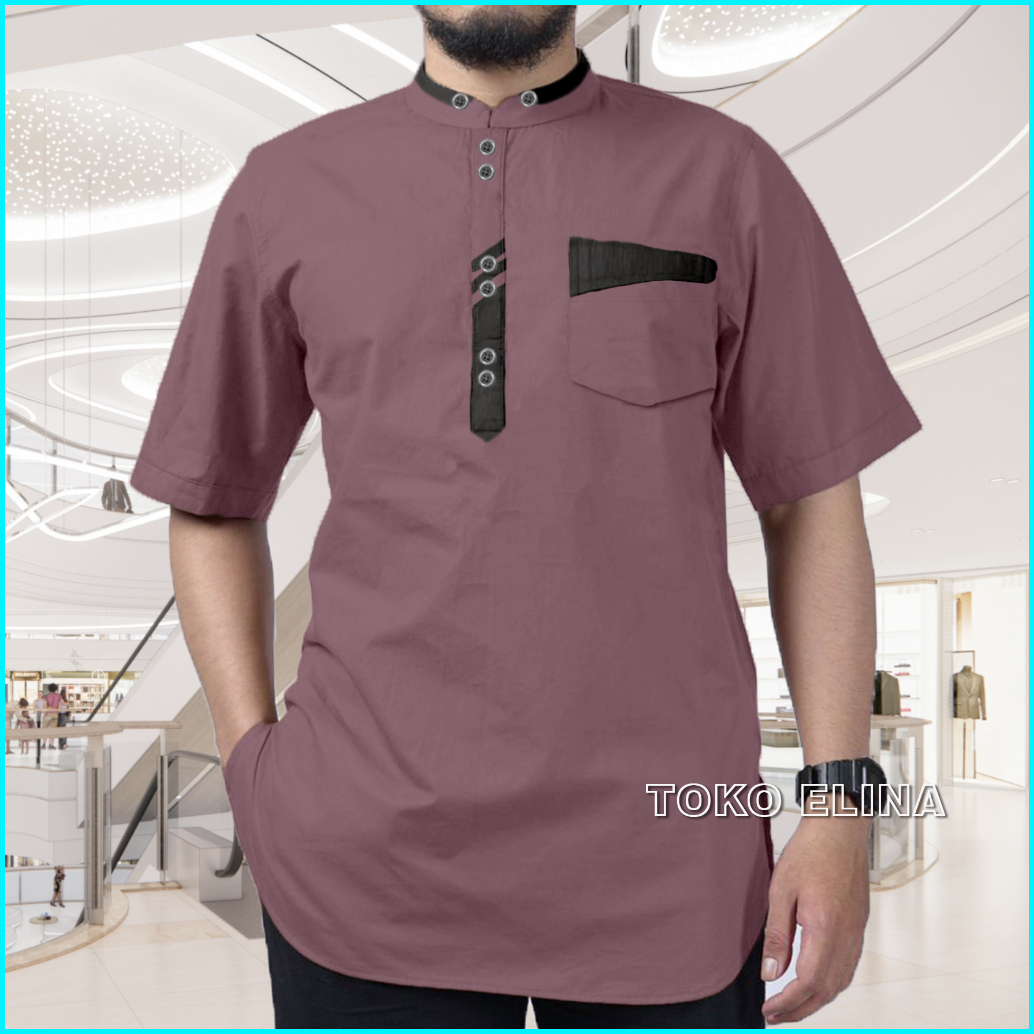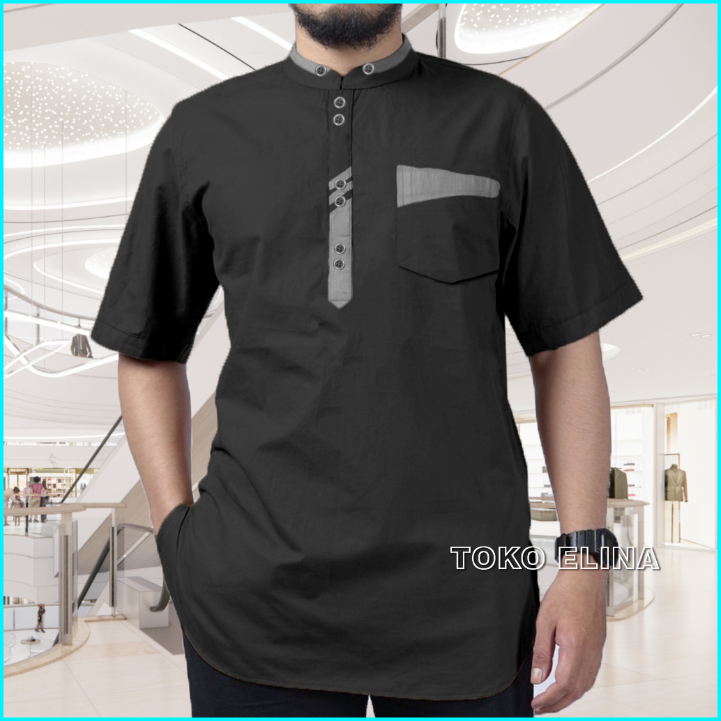 Baju Koko Kurta Lengan Pendek Atasan Muslim Pria Dewasa Bahan Katun Premium
