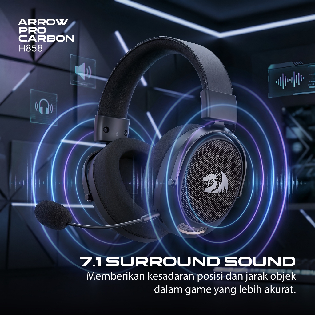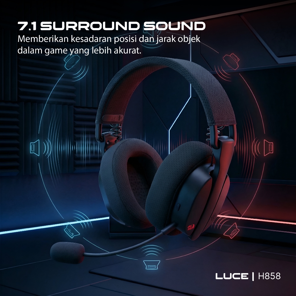 Redragon Gaming Headset 7.1 Surround Sound 40/53mm Audio Driver Detachable Microphone Wired/2.4G/BT