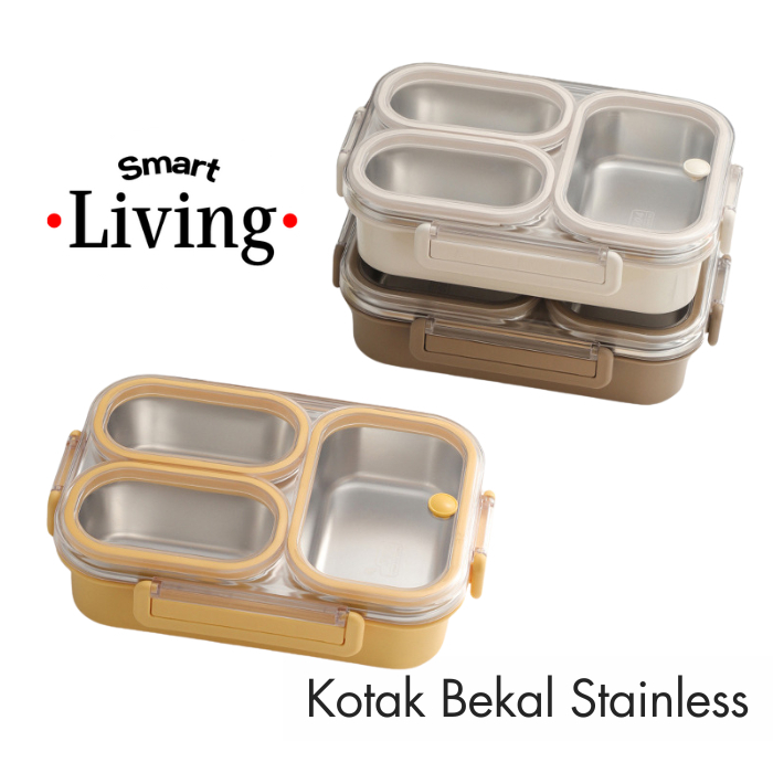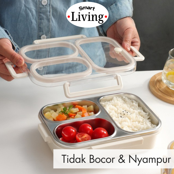 SMRTLIV Kotak Makan Bekal Bento box Lunch Box anak Sekolah / dewasa Stainless 304 Sekat 2 dan Sekat 3