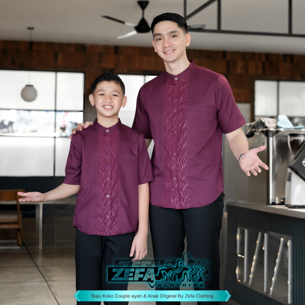 Baju Koko Couple Ayah Anak Laki Laki Lengan Pendek Motif Jordan Bahan Toyobo Import Terbaru 2026 Warna Mahogany Size Dew