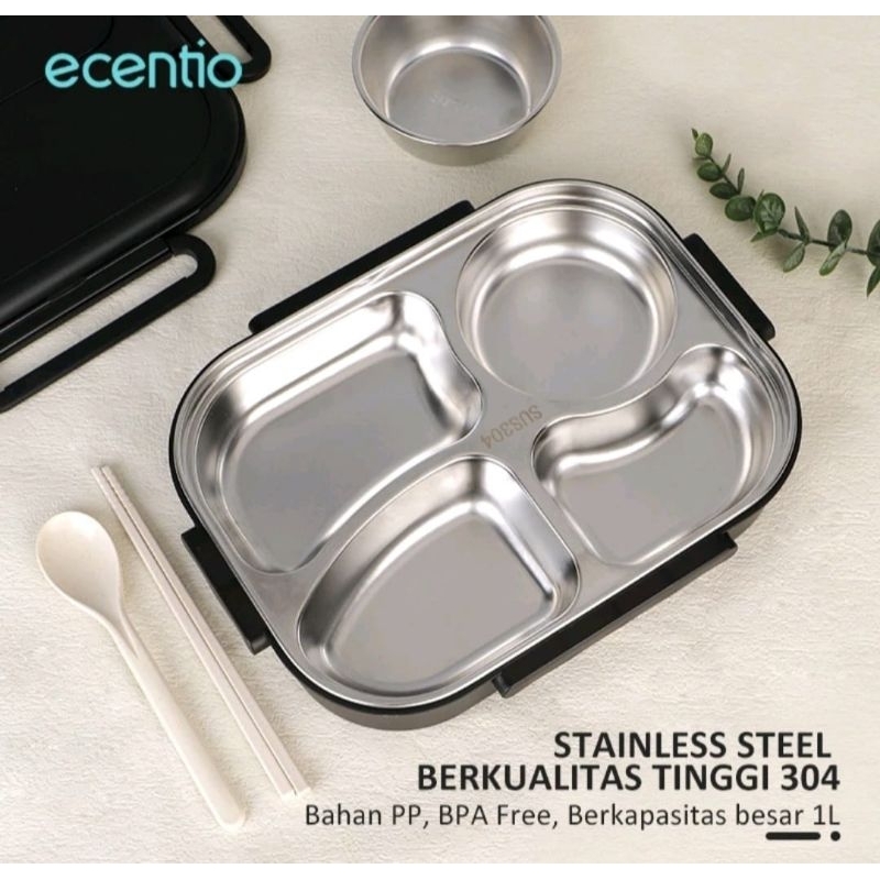 Ecentio Lunch Box Kotak makan Bekal Tempat makan 5skat Stainless Steel 1000ml 4skat Black Dan 5skat blue Lunch Box Kotak
