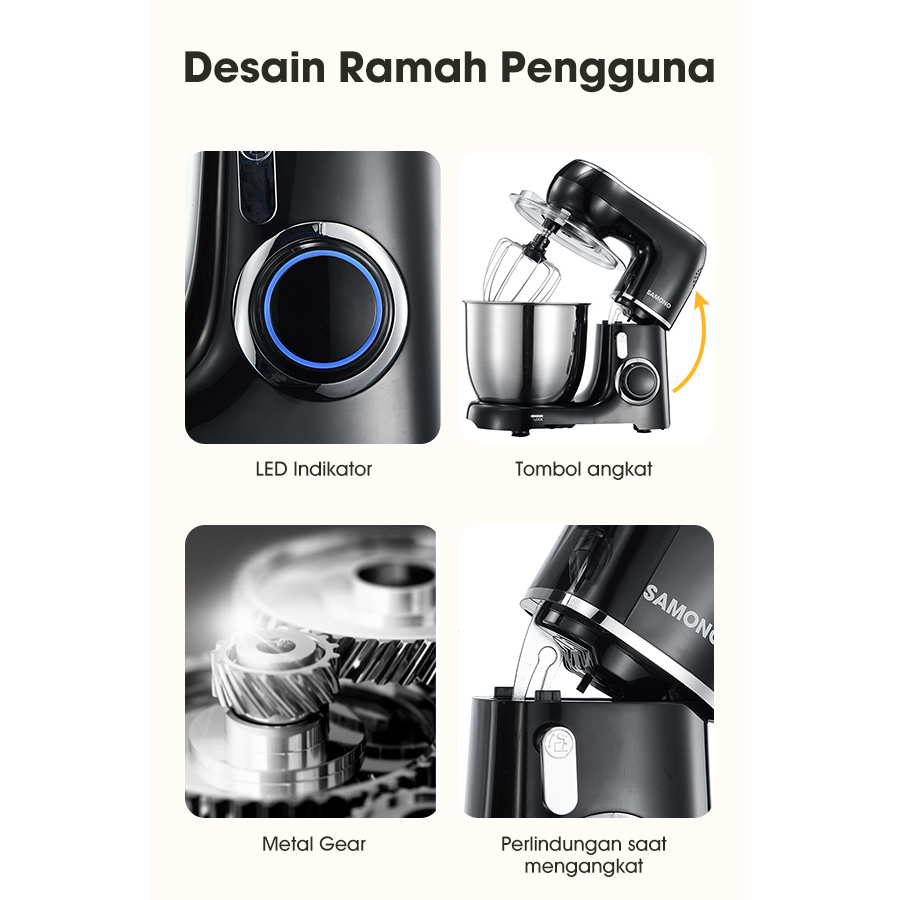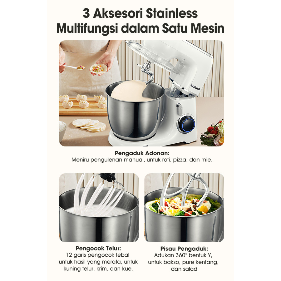 SAMONO 3in1 Stand Mixer Besar 5 Liter Pengaduk Adonan 3in1 Mixer with Bowl