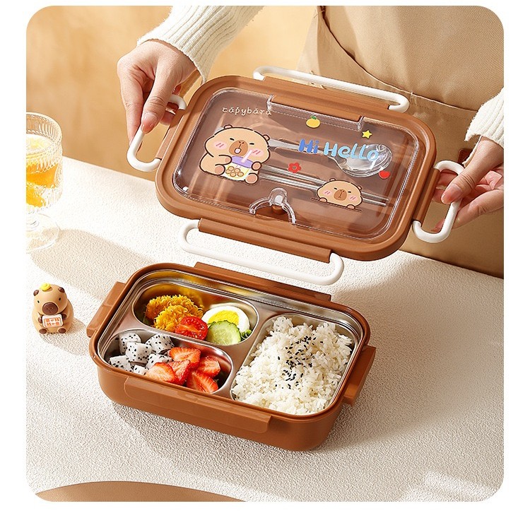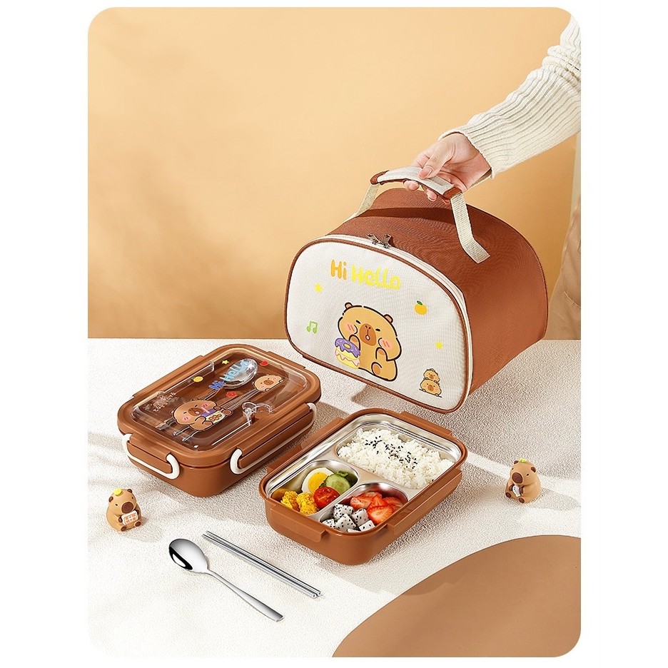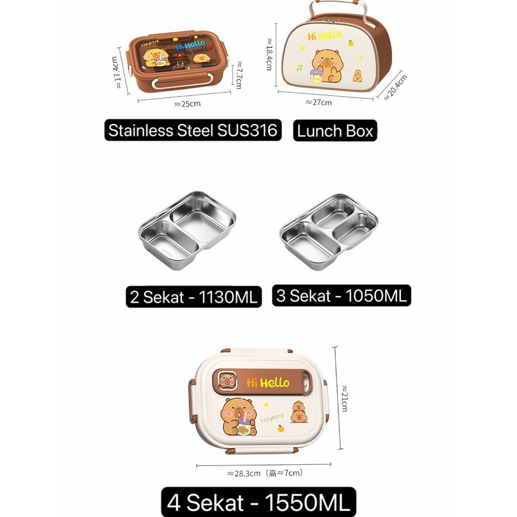 Kotak Makan Anak Lunch Box Karakter Cbara Kbara Capybara dengan tas bekal