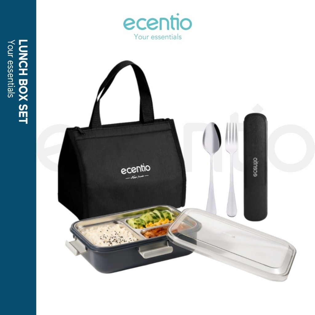 ecentio lunch box set stainless 850ml kecil tempat makan anti tumpah free sendok tas bekal