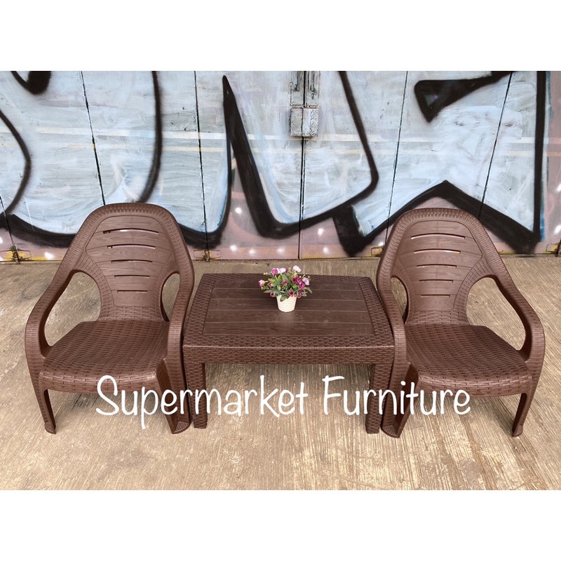Kursi Santai Plastik OL 509 Rotan + Meja OST PANJANG / Kursi Teras / Kursi Taman