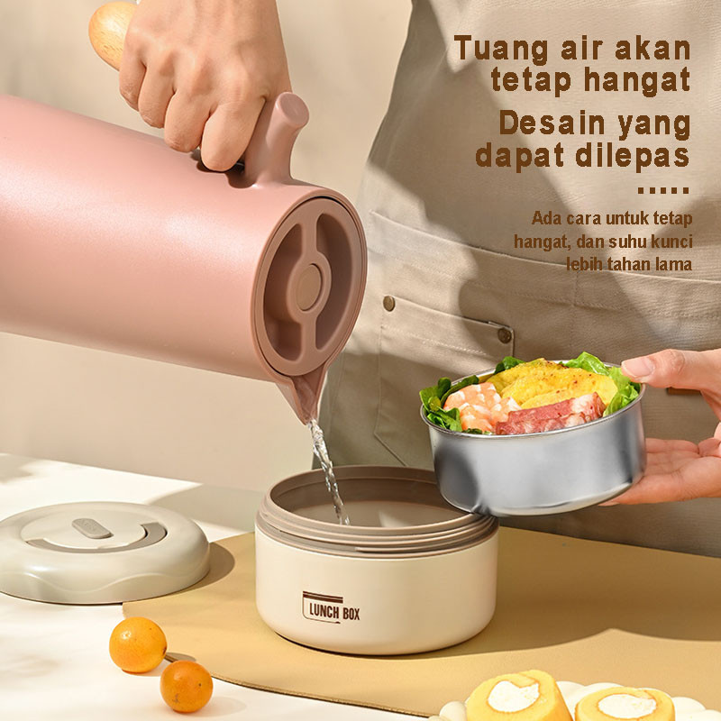 Lunch Box Bento Stainless Steel - Kotak Makan Portabel Bulat, Tahan Panas & Anti Bocor, Food Container Sealed untuk Nasi