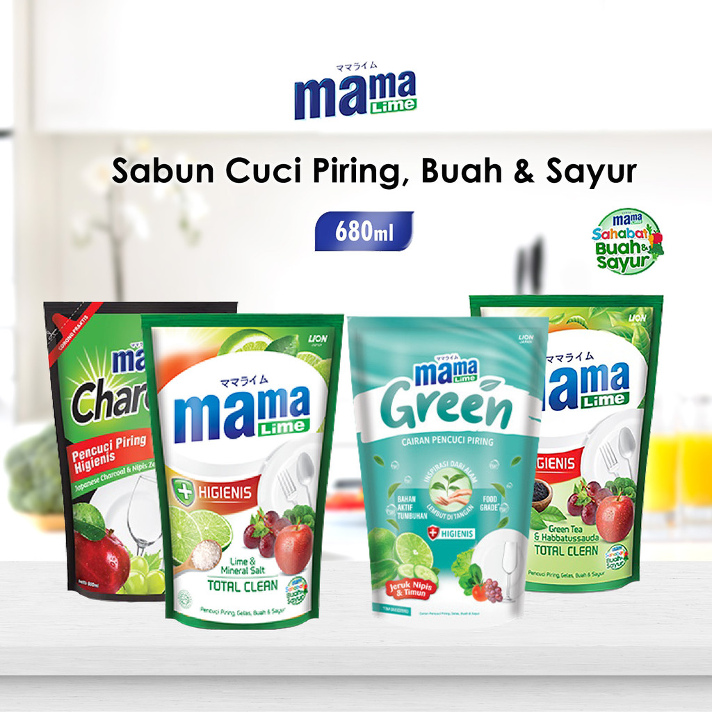 Mama Lime Sabun Cuci Piring Green Tea Charcoal Pouch 680 ml Pembersih Piring Gelas Ati Bau Amis