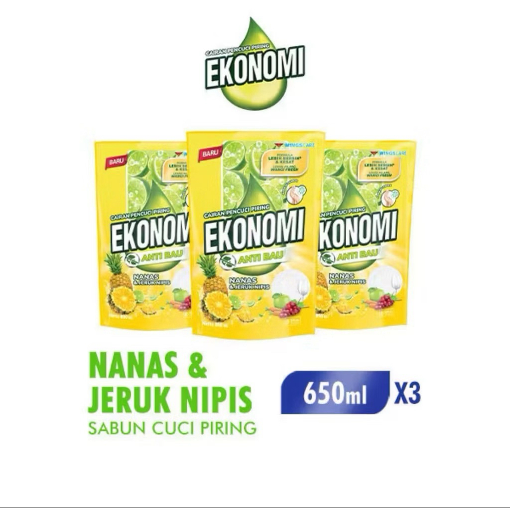 Ekonomi Power Liquid Sabun Cuci Piring Nanas & Jeruk Nipis Pouch 650 ml x3
