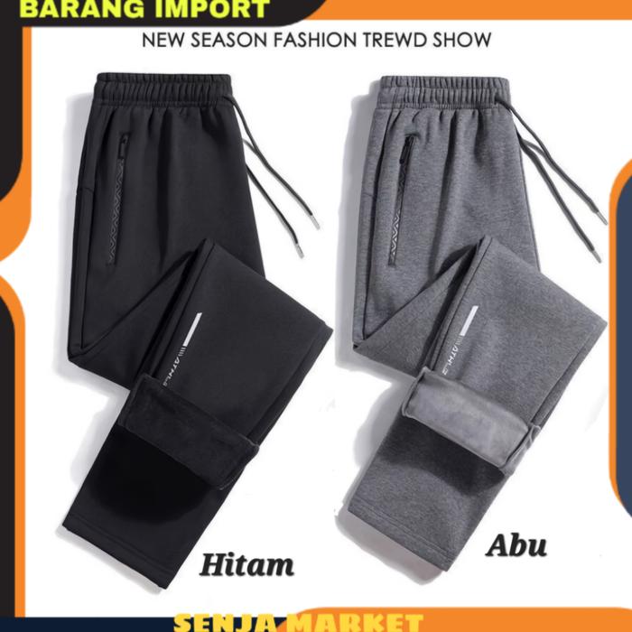 CELANA WINTER LONG JOHN MUSIM DINGIN SALJU BULU TEBAL HANGAT IMPORT PRIA - HITAM, XL