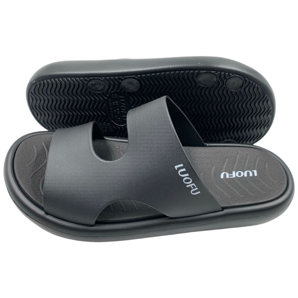 LUOFU Sandal Selop Karet Ban 2 Garis Samping Wanita Import E7212B-BRE01 (Z3)