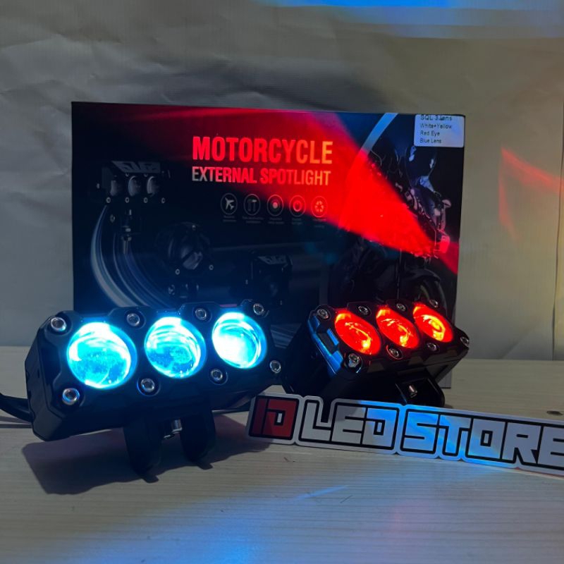 FLASH SALE Lampu Tembak Kabut LED Laser Gun SQL 3 mata Red Eyes 85 Watt Mini Projie 3 mata Putih Kuning Devil Merah