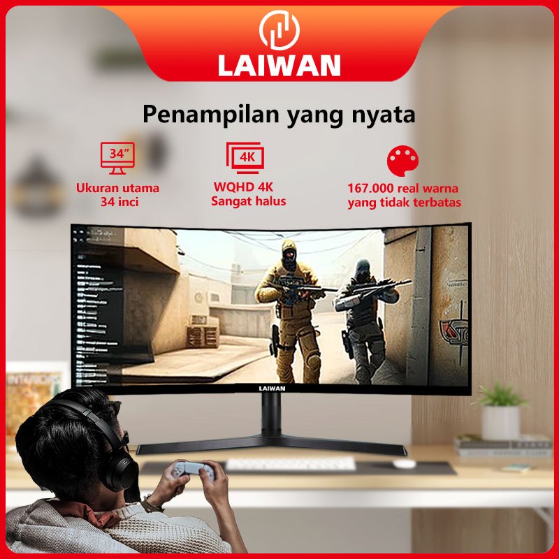 【LAIWAN】Monitor PC Gaming Curved 34 Inci - 4K UHD | 165Hz Anti Tearing dan Premium quality