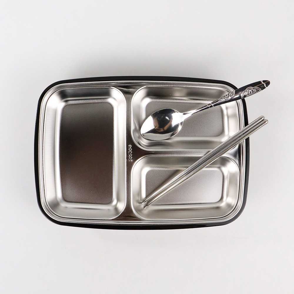 TaffHOME Kotak Makan Lunch Bento Box Stainless Steel 3 Grid dengan Spoon & Chopstick 1L - OU1000