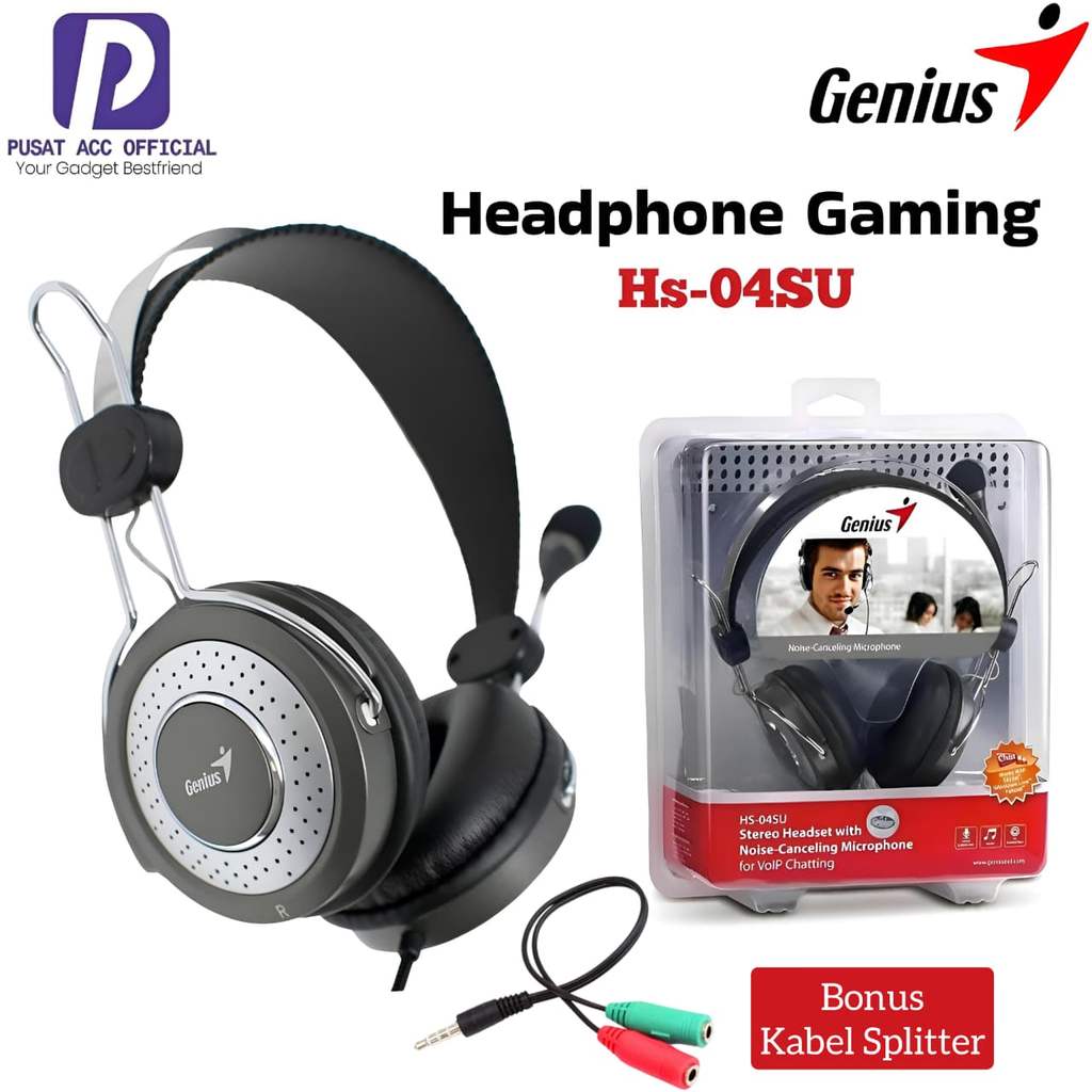 Headphone Earphone Gaming GENIUS HS04SU 3.5mm HP PC Super Bass With Noise Cancellation Microphone