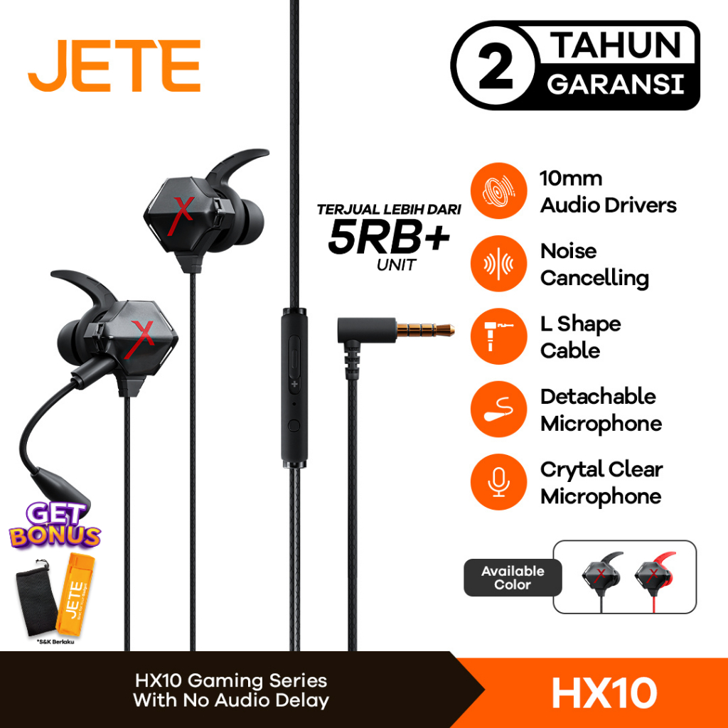 Earphone Headset Gaming Jack 3,5mm JETE X HX10 with Detachable Mic - Garansi 2 Tahun