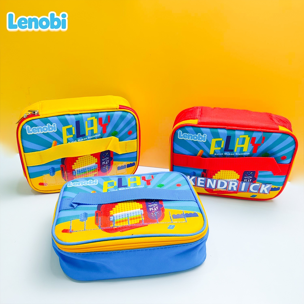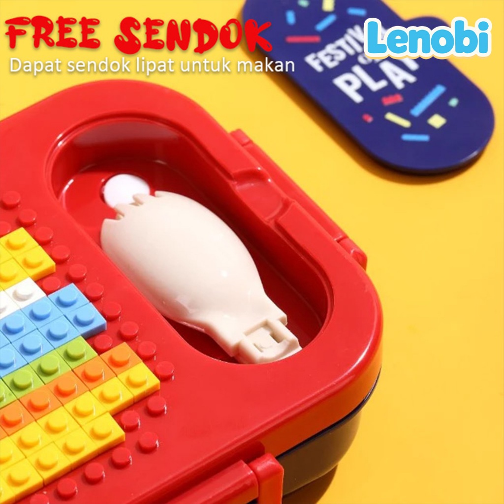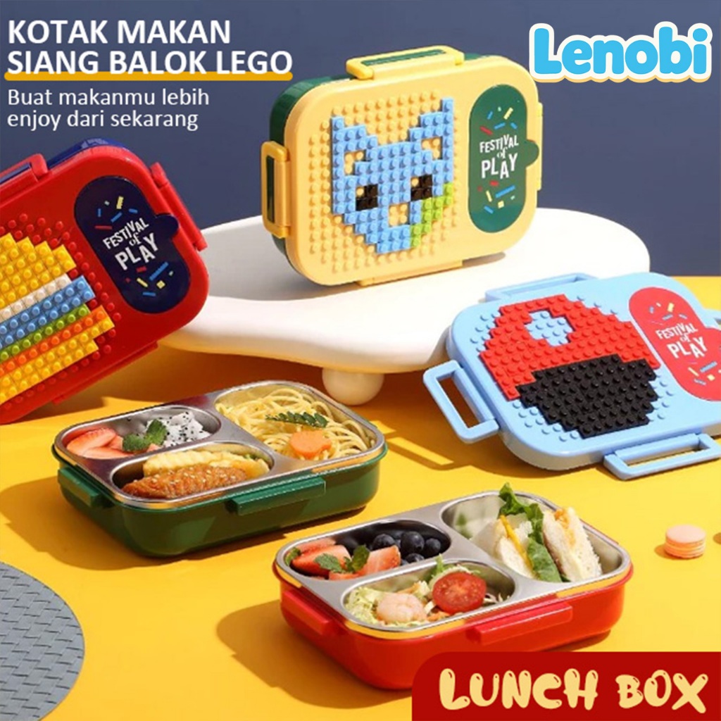 LENOBI - Lunch Box 3 Sekat Stainless Lego bricks BPA FREE anti mix dan anti tumpah 600ml LB - 7161