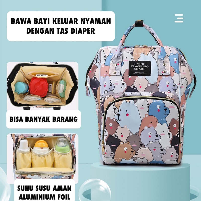 TAS BAYI 6010 - Tas Bayi LTS CARTOON Ransel Perlengkapan Travelling Popok Bayi Tas Diaper Bag - G1