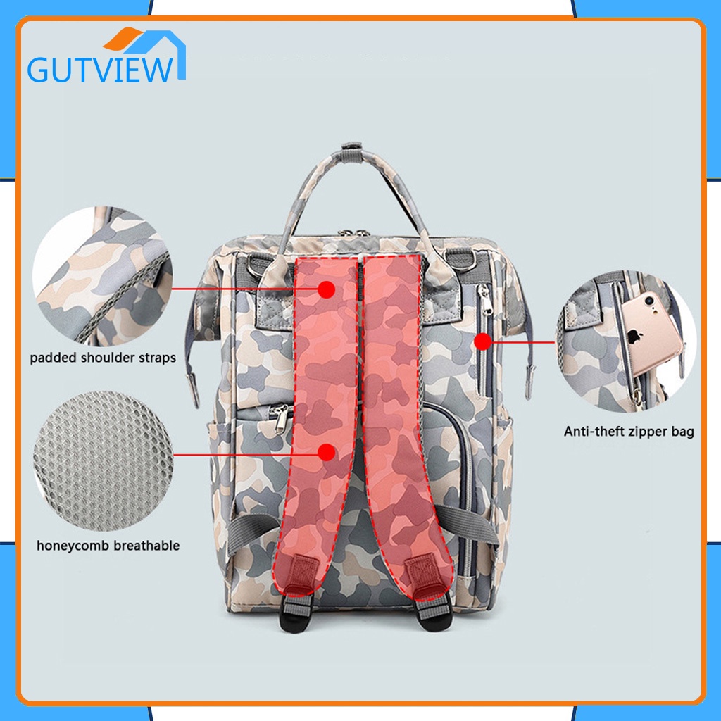GutView Tas Perlengkapan Bayi Multifungsi Tahan Air Upgrade Tas Popok Ransel Tas Popok Bayi Tas Kasual Tas Travel Bayi B