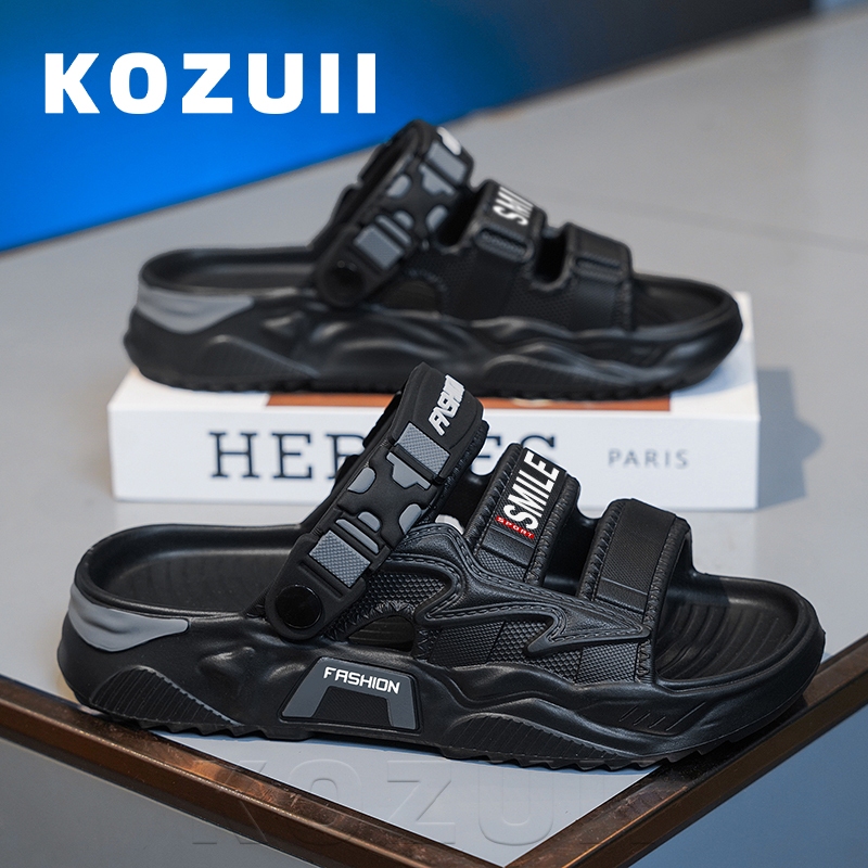 Kozuii Sandal Pria Sandal Gunung Pria Outdoor Adventure Hitam Sandal Pria Sol Tebal Anti Slip Bahan Eva Size 39-44