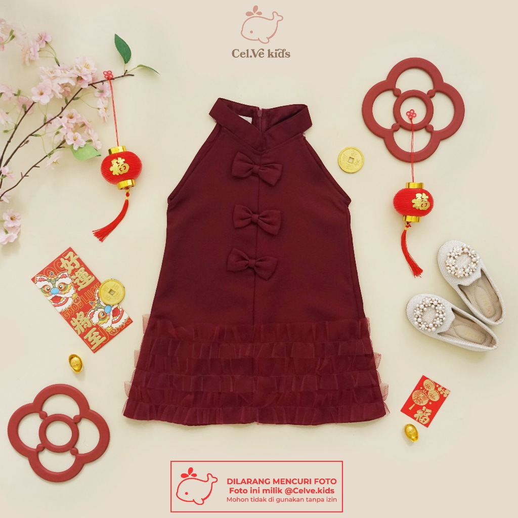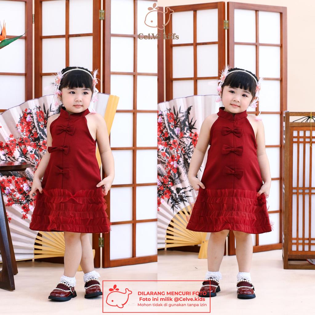 CELVEkids - Dress Imlek Mei Jia Baju rok Anak Perempuan Korean style Semiwool + Tile usia 1-8th