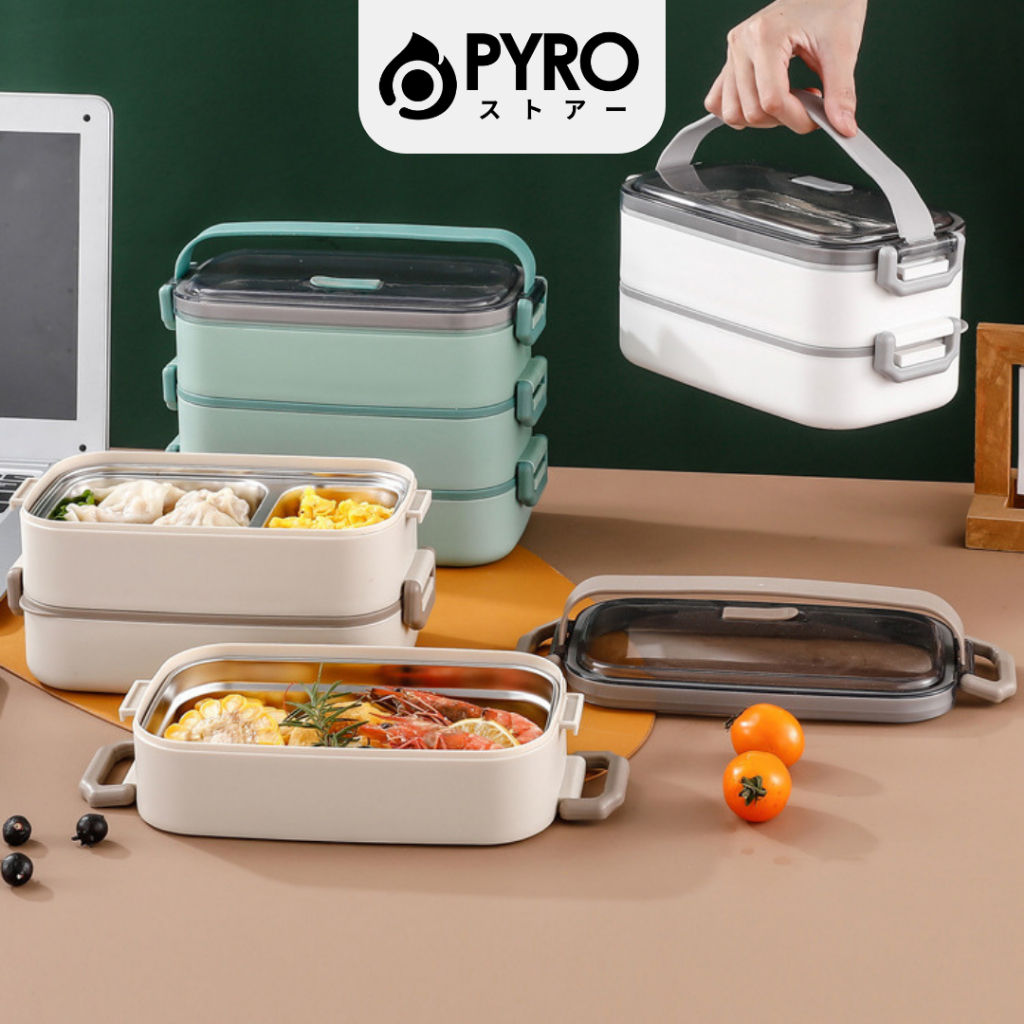 [PYRO] Tempat Makan Susun Bekal Stainless Lunchbox Set Jepang Sekat 2100 ML Anti Bocor Tumpah