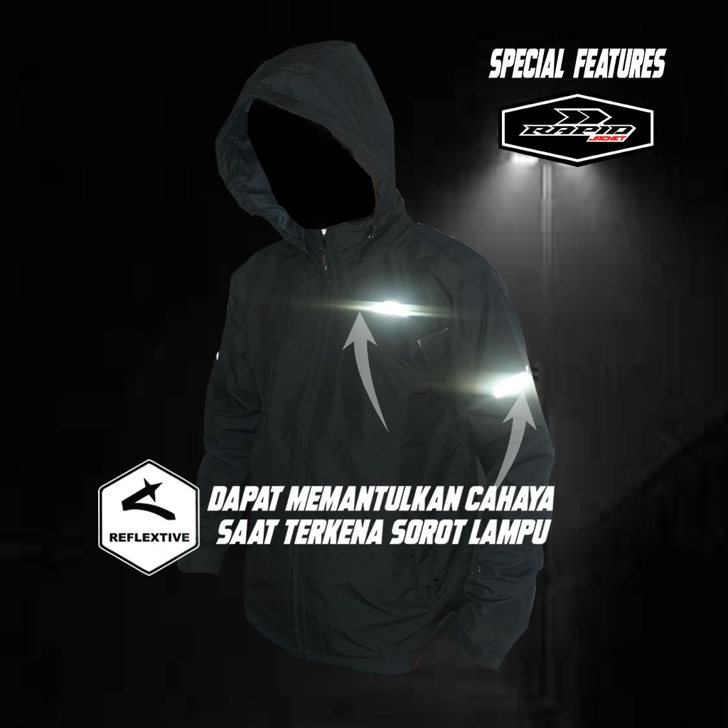 Jaket motoran harian hoodie RAPID NEOSKYLINE pria parasit premium jacket reflektif warna hitam