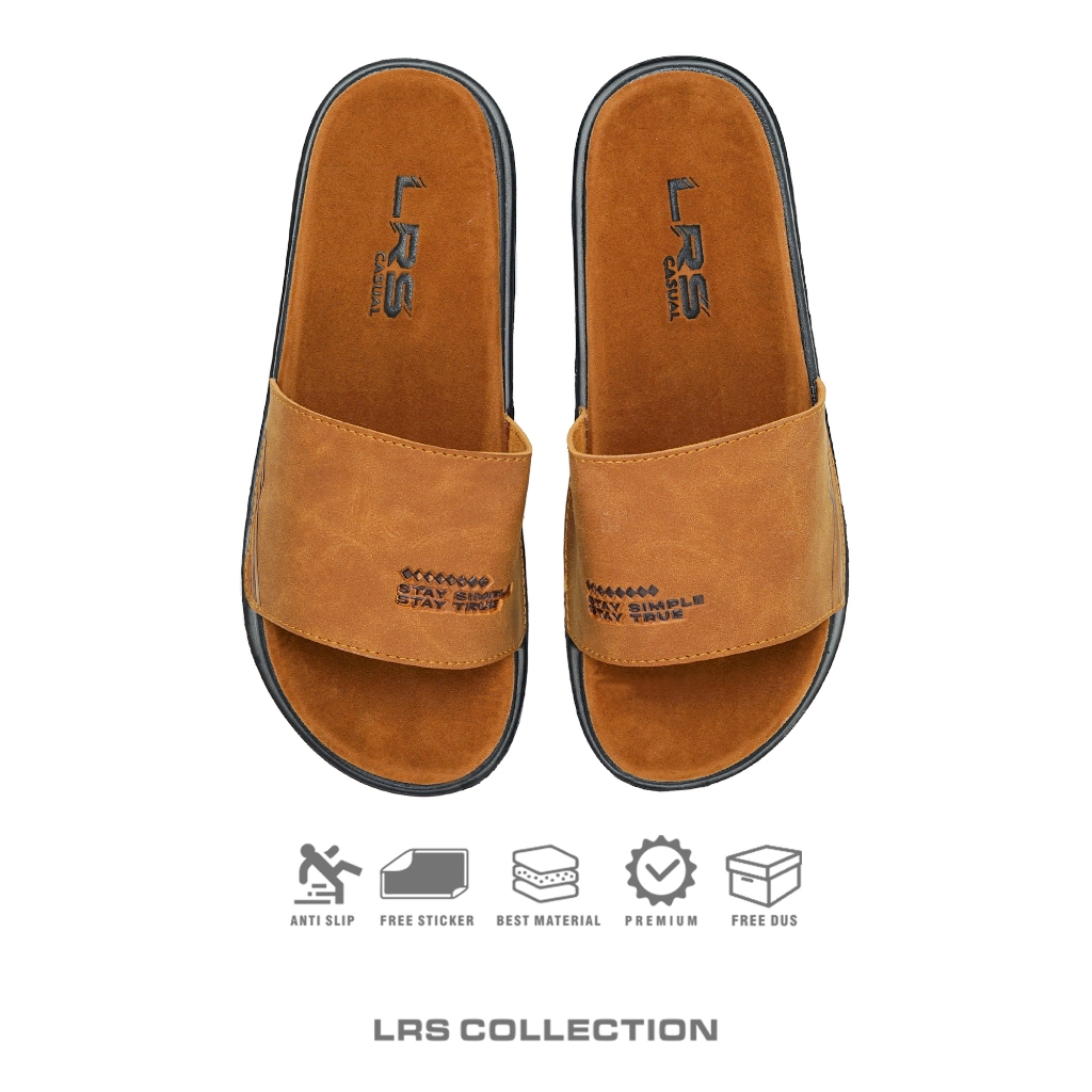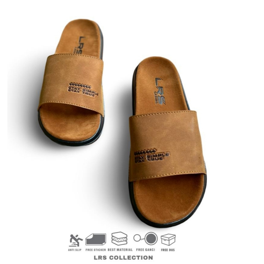 Lrs Collection - Sandal Pria Wanita Suede Visible - Brown Tan ( Free Box )