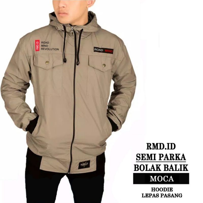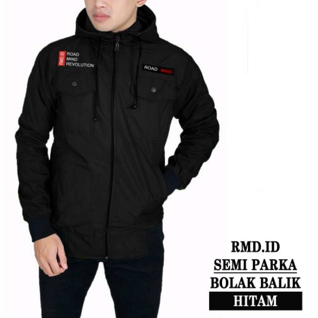 JAKET SEMI PARKA BOLAK BALIK REVOLUTION BLACK JAKET PARASUT