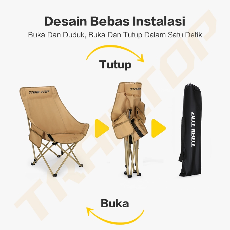 TrailTop Kursi Lipat Outdoor Sandaran Kain Oxford Bangku Lipat Kursi Lipat Portable Beban 150kg