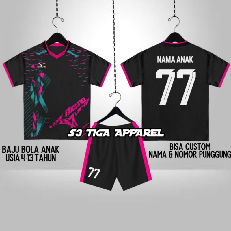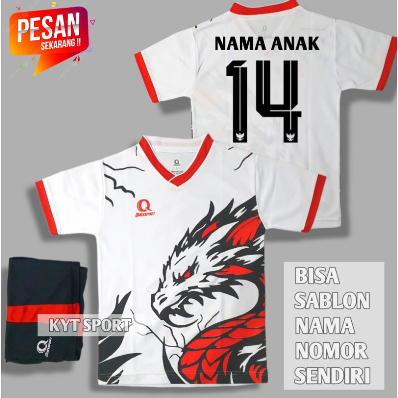 FREE custom nama nomor punggung stelan baju bola anak anak cowok cewek usia 4-14 tahun