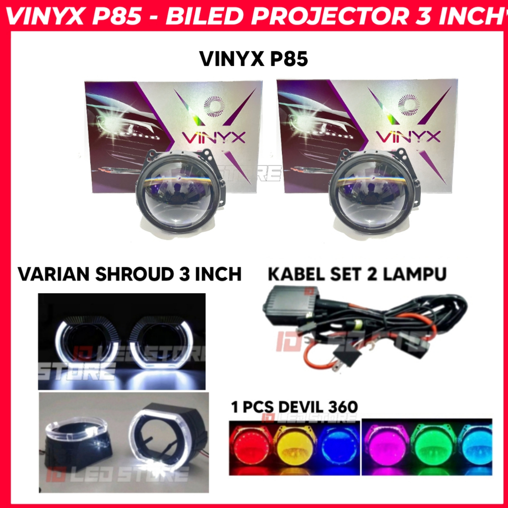 FLASH SALE PAKET KOMPLIT Lampu Led Headlamp Projector Biled Vinyx P85 3 Inch 70 Watt Premium Purple Lens