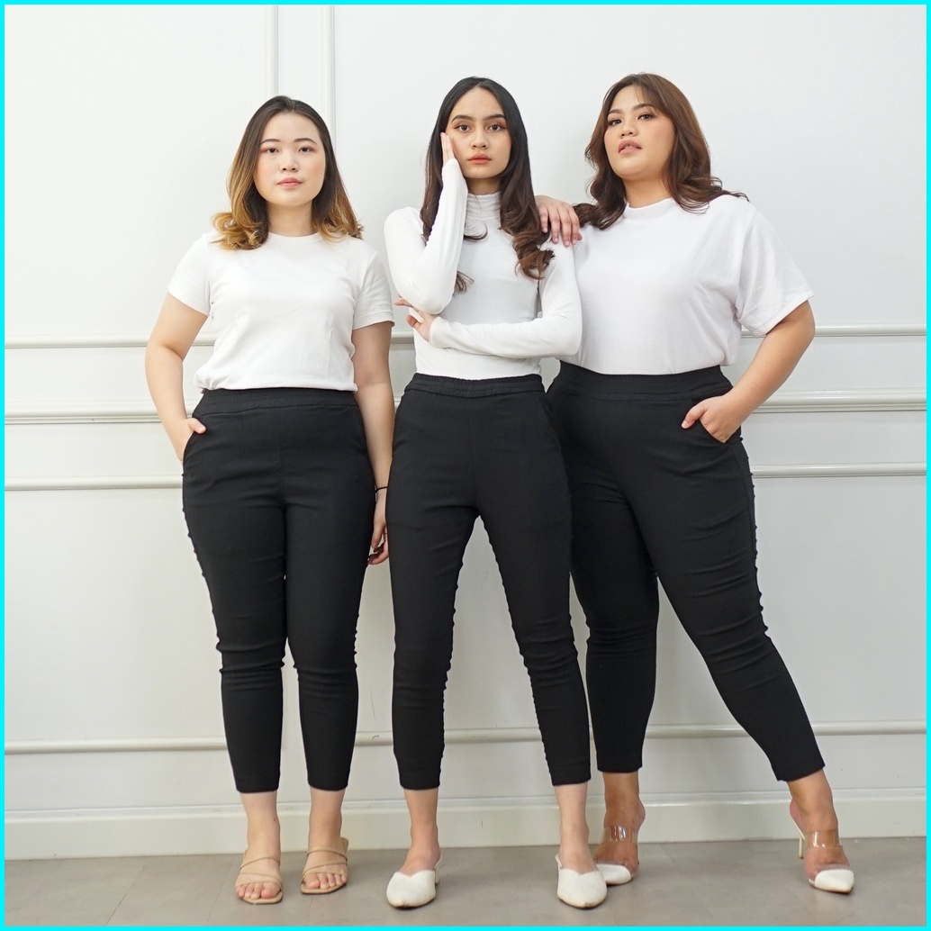 Ie.demode Elisa Celana Panjang Wanita Jumbo Kerja Kantor Karet Fit Pants Bahan Soft Jeans Hitam