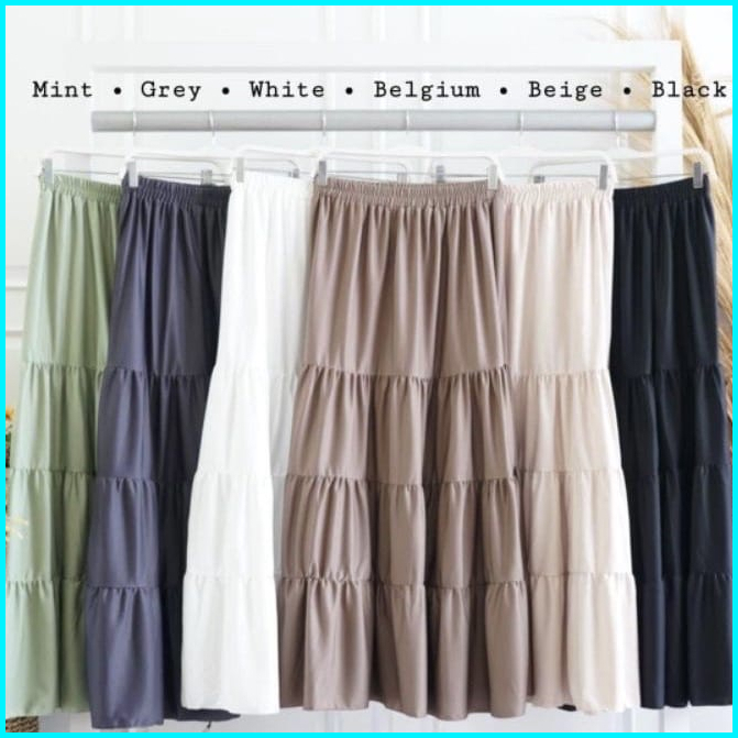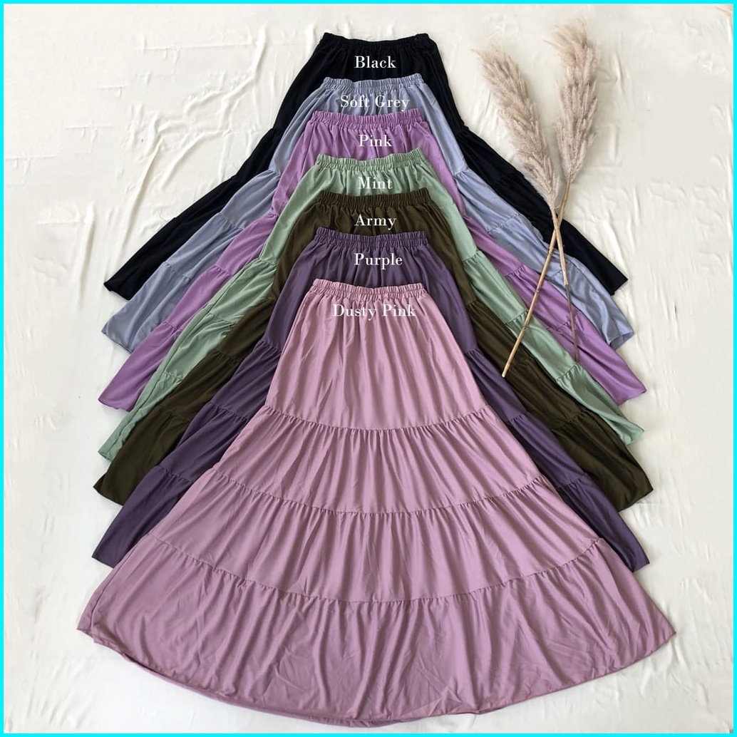 Rok Panjang Beraksen Kerutan 4 Susun Rok Muslim Terbaru Terlaris