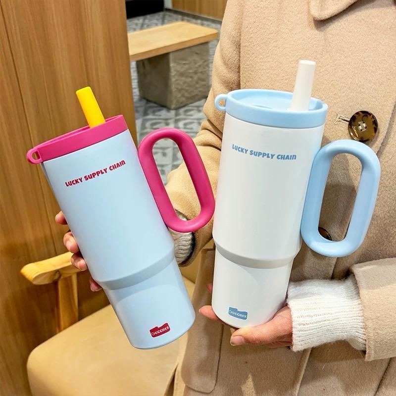 Tumblr Botol Minum Stainless Gagang 750ml Dengan Sedotan + Infused Anti Bocor Dan Tahan Panas Dingin