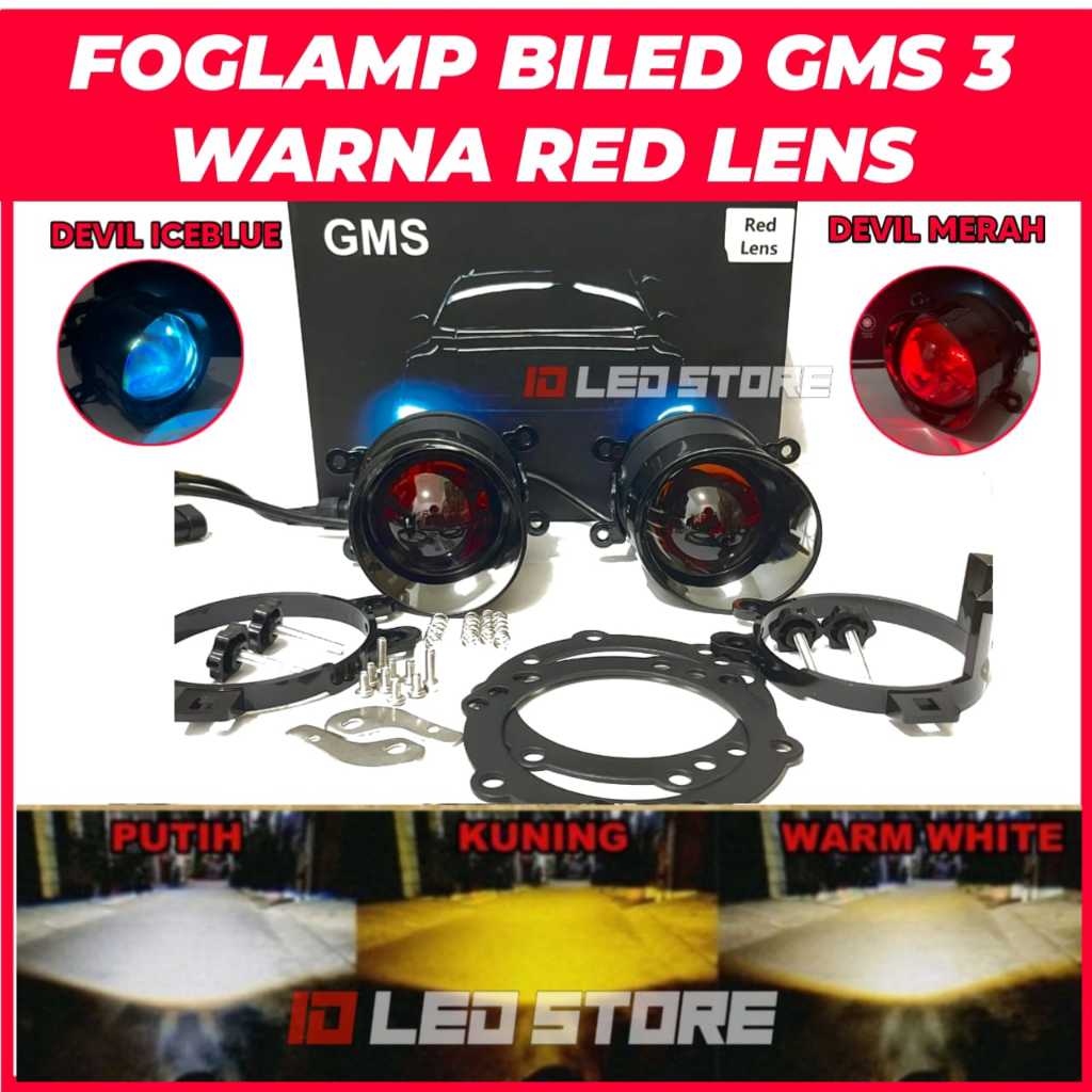 FLASH SALE Biled Foglamp 3 Warna 3 Inch Red Lens 45 Watt Merk Gms Bracket Universal Pnp Semua Mobil plus devil