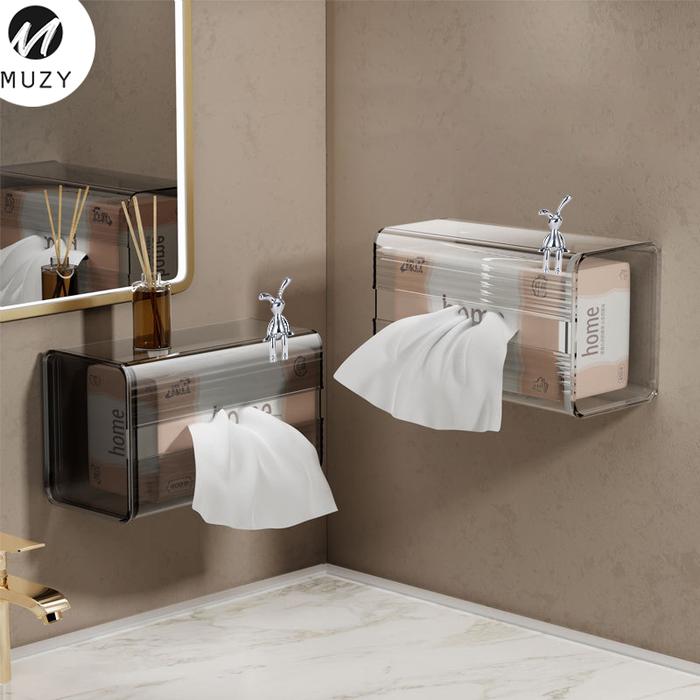 Muzy Kotak Tisu Transparan Tempat Tisue Kamar Mandi Aestetic Tempat Tisue Tempel Dinding Dapur HSB795 - Transparan