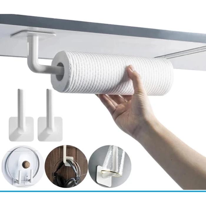 Holder Hook Gantungan Tisu Gulung Tempel Dinding Model PVC Tanpa Paku