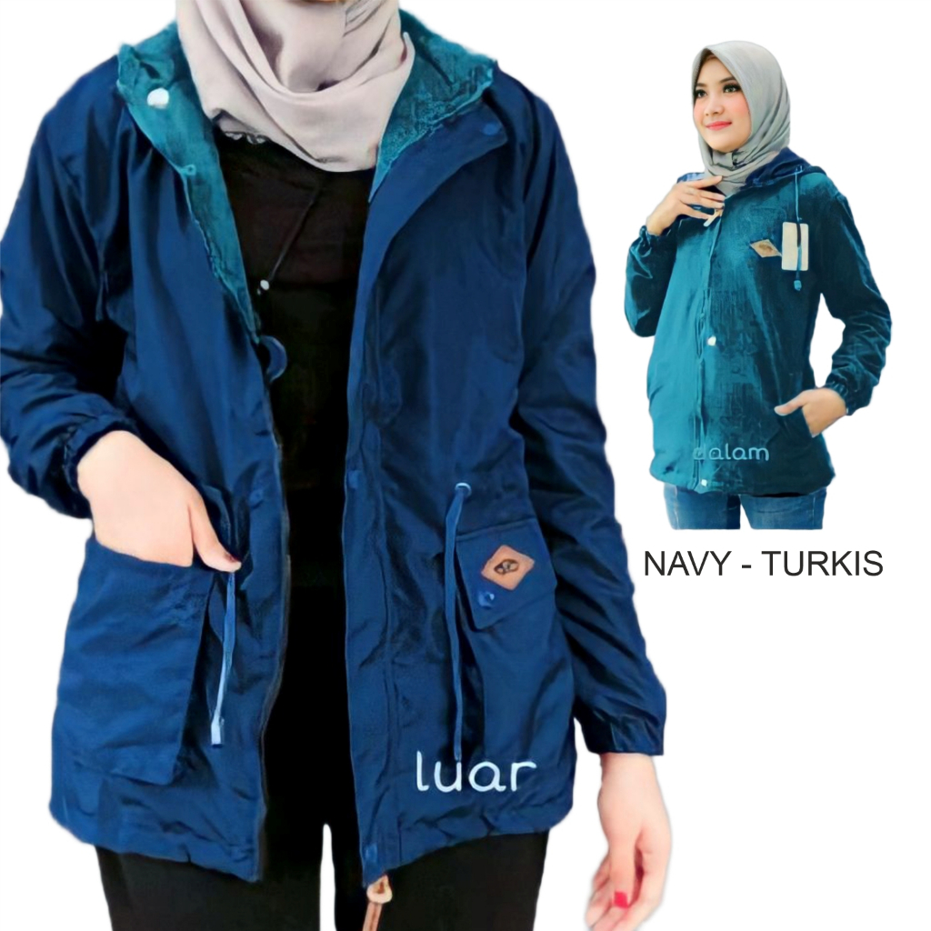 Jaket Parasut Wanita Nevy Turkis Ukuran L Sampai XXL