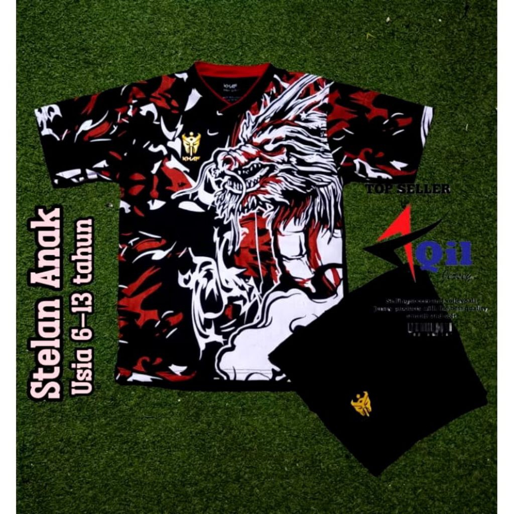 terbaru baju bola futsal anak motif naga usia 6-13 tahun