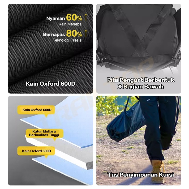 TrailTop Kursi Lipat Outdoor Beban 150kg Kursi Camping Bulat Balutannya Lebih Kuat Dan Lebar 63cm