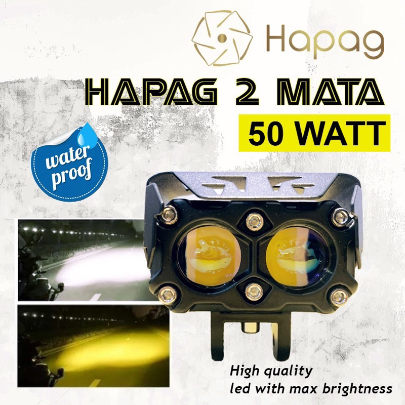 FLASH SALE HAPAG 2 Mata Mini Projie 2 Lens 50 Watt Putih Kuning DC 12 - 24 Volt