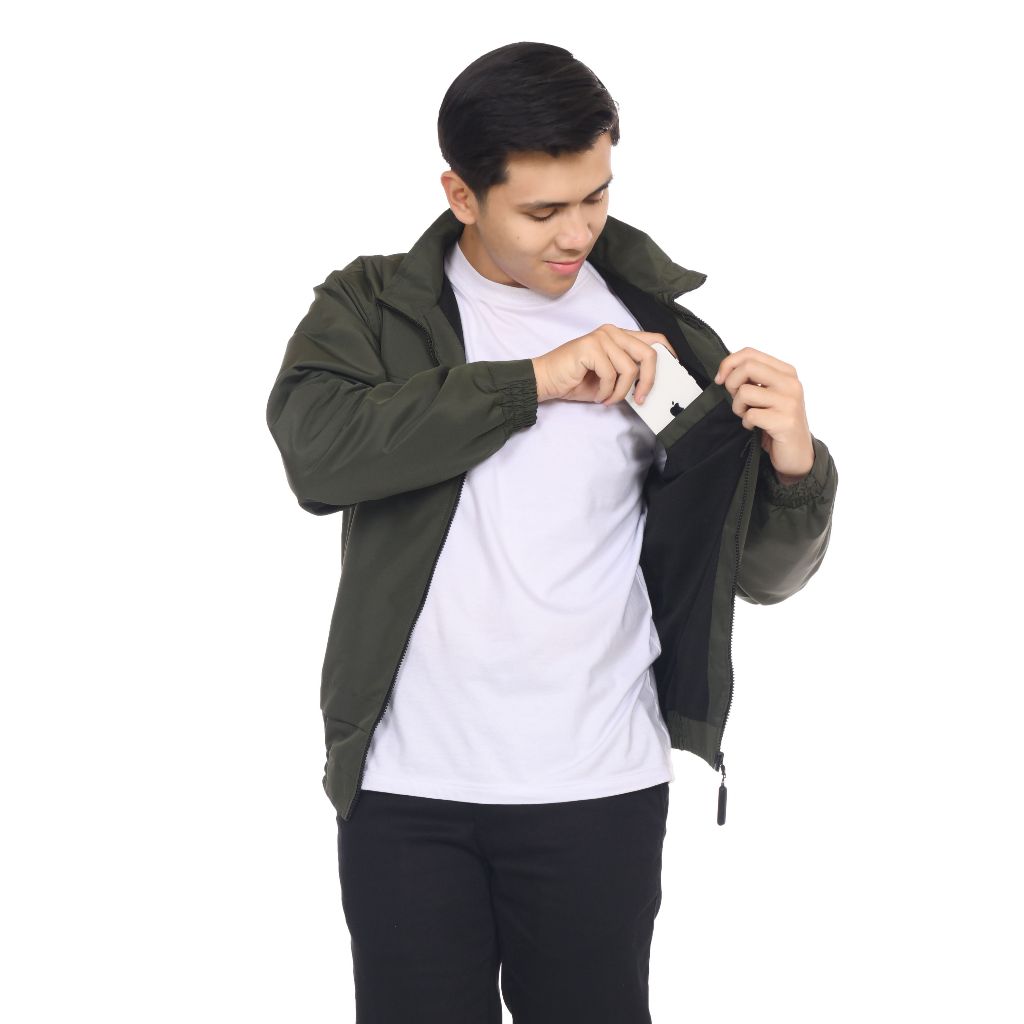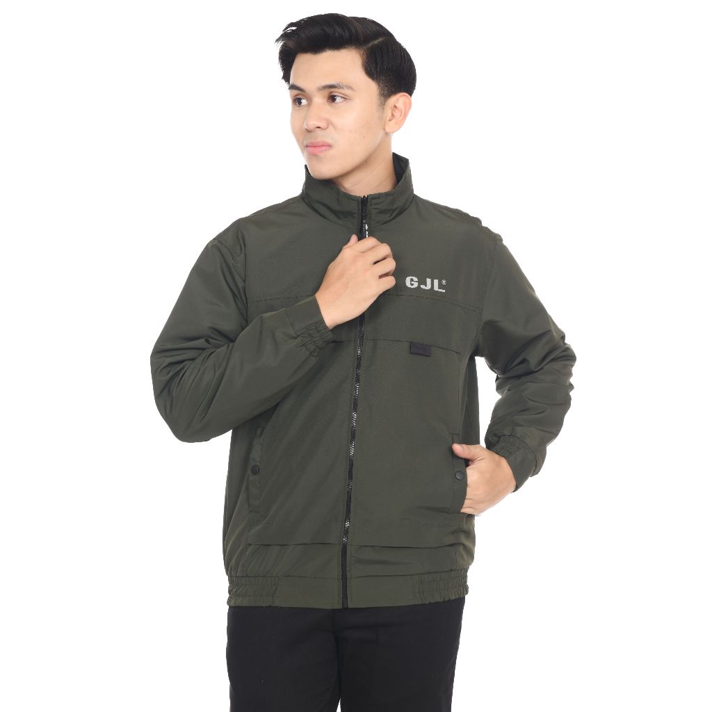 Ghajleng Jaket Pria Drawstring Rubber Jacket Parasut Cowok Army Waterproof Taslan Zn