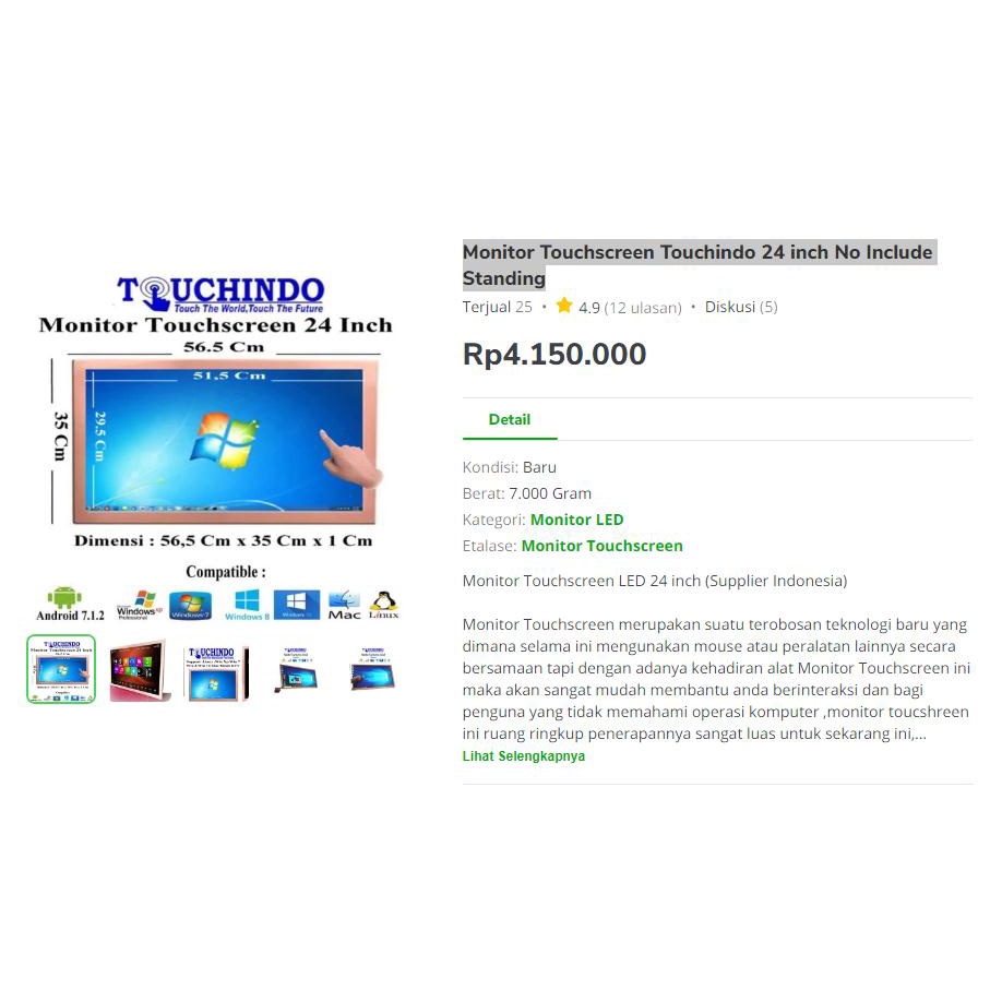 Monitor Touchscreen Touchindo 24 inch No Include Standing