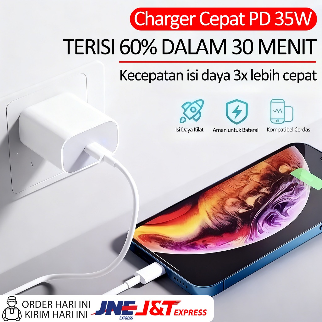 Kirana Connect - Fast Charging Paket Charger Cepat 35W + Kabel Type-C - Kompatibel dengan iPhone seri 15 hingga 17, iPad