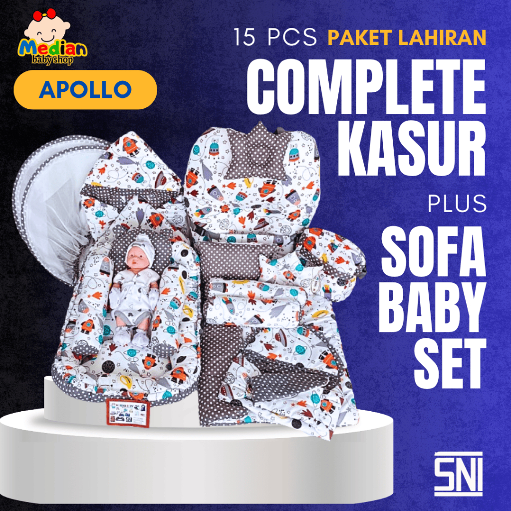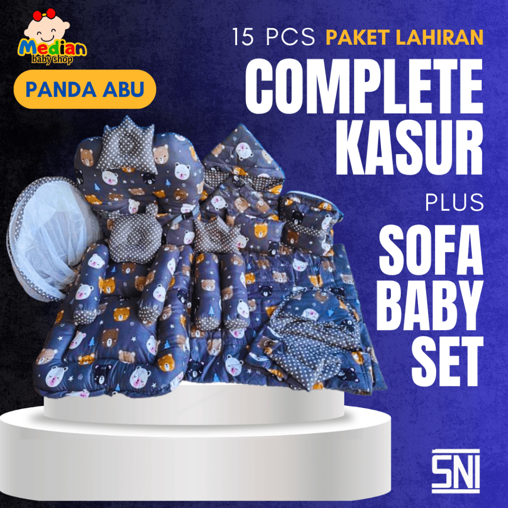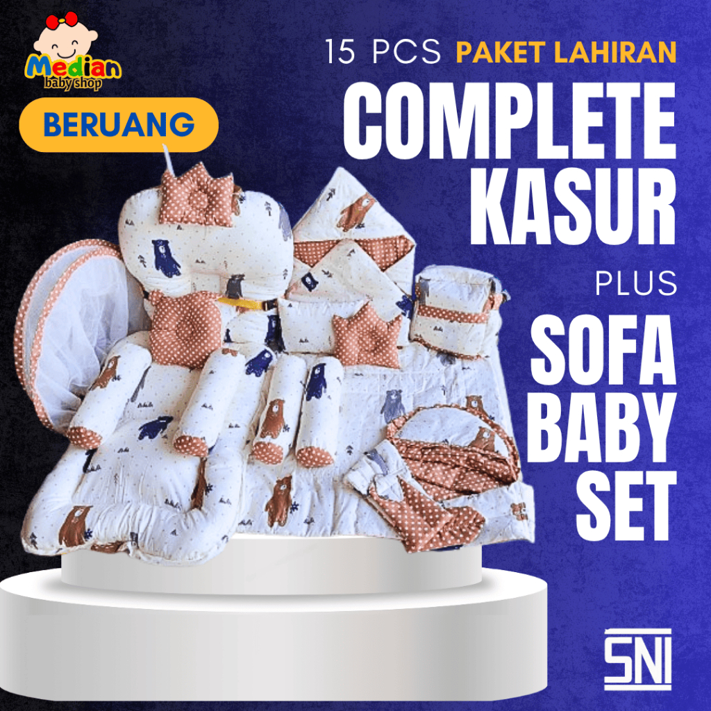 15 PCS Paket lahiran COMPLETE Kasur Kelambu+ Sofa Baby Set Bahan katun adem kado lahiran sudah SNI