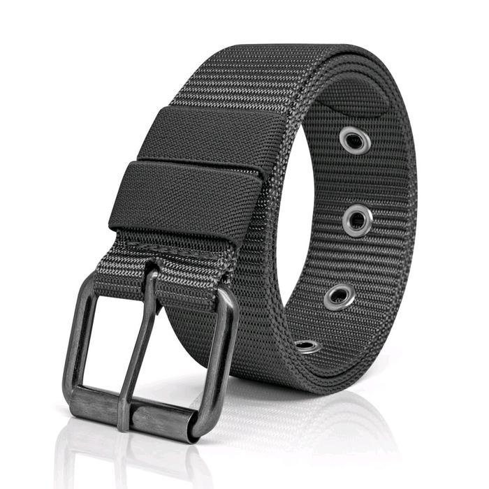 Gesper Ikat Pinggang Sabuk Pria dan Wanita Tipe Lubang /Jarum Bahan Nylon Tebal Besi Hitam Belt - Hitam
