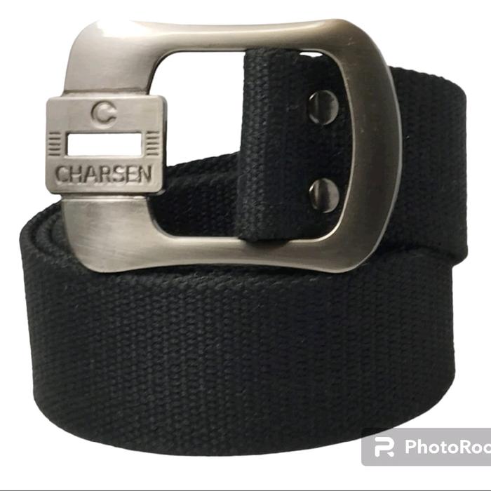 Gesper Sabuk Pria Katun canvas Tactical CHARSEN Gitar kepala besi silver dop - Hitam