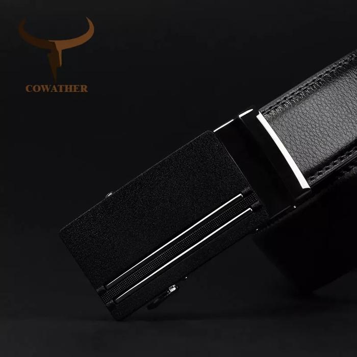 Ikat pinggang Pria Cowather Kulit Sapi Asli - CZ146 Black Stainless - Hitam 130
