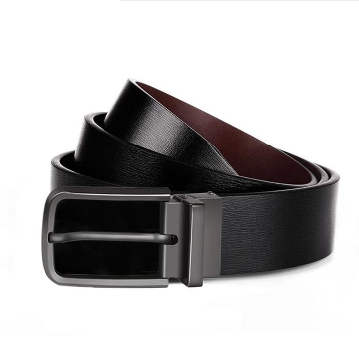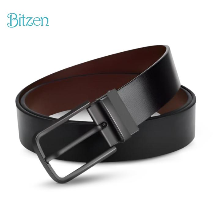 Bitzen Sabuk Ikat Pinggang Pria 2 Warna Hitam Cokelat Bahan Kulit Imitation Bisa di Putar - Hitam Khaki