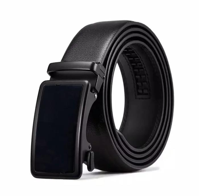 BELI 1 Gratis 1 Dompet panjang kulit D29 ikat pinggang kulit pria rel automatis panjang 120cm Gesper elegan - Hitam